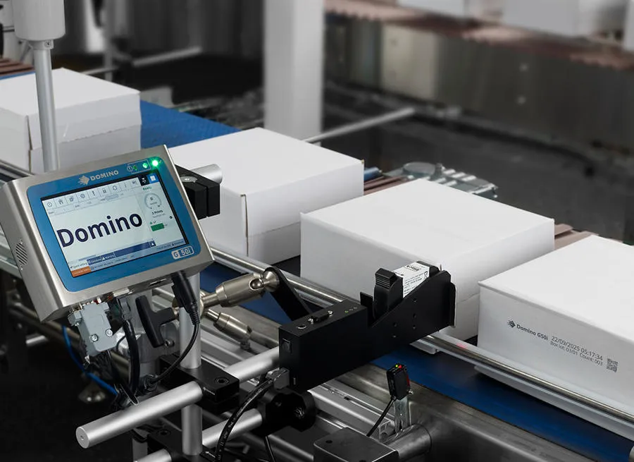 La Domino G50ies nuestra impresora de inyección de tinta térmica de nivel básico( TIJ) Codificador de cajas ideal para codificar texto, logotipos, códigos de barras y datos variables en sus embalajes primarios y secundarios. Diseñado para una fácil instalación, directamente desde la caja, sin necesidad de conocimientos técnicos.