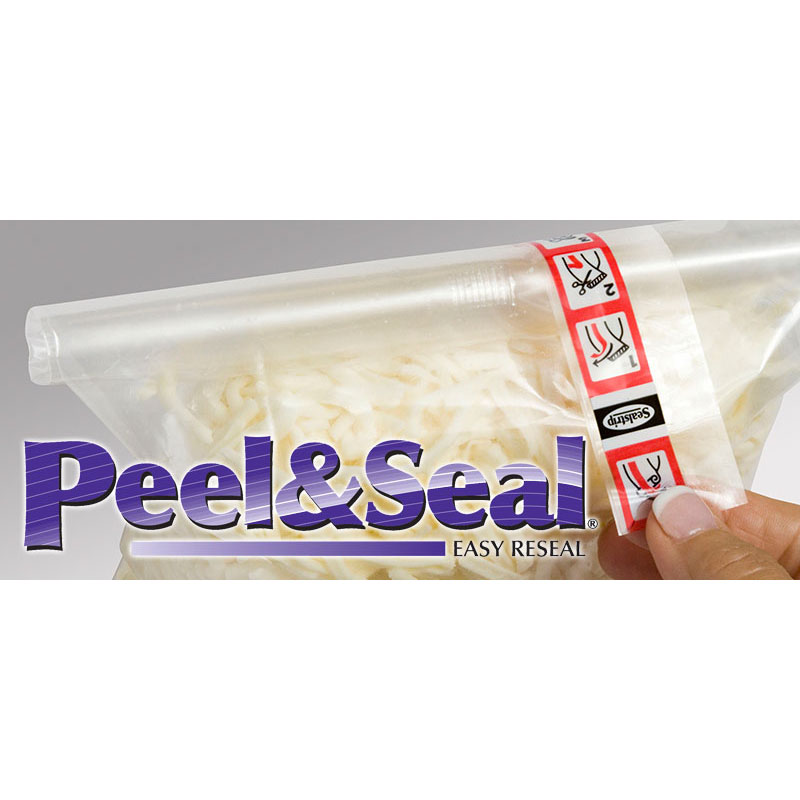 Peel&Seal aplicaciones incluyen ensaladas frescas, productos horneados y verduras congeladas, mezclas para hornear, galletas, aperitivos y dulces. Pee&Seal aplicaciones también pueden incluir casi cualquier producto envasado en una embolsadora sello forma de llenado vertical y algunos productos envueltos en una envoltura de flujo.