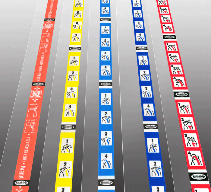 La cinta lleva impresas instrucciones estándar en color rojo y negro y también puede personalizarse por color o con gráficos de la marca y con un ancho optimizado.